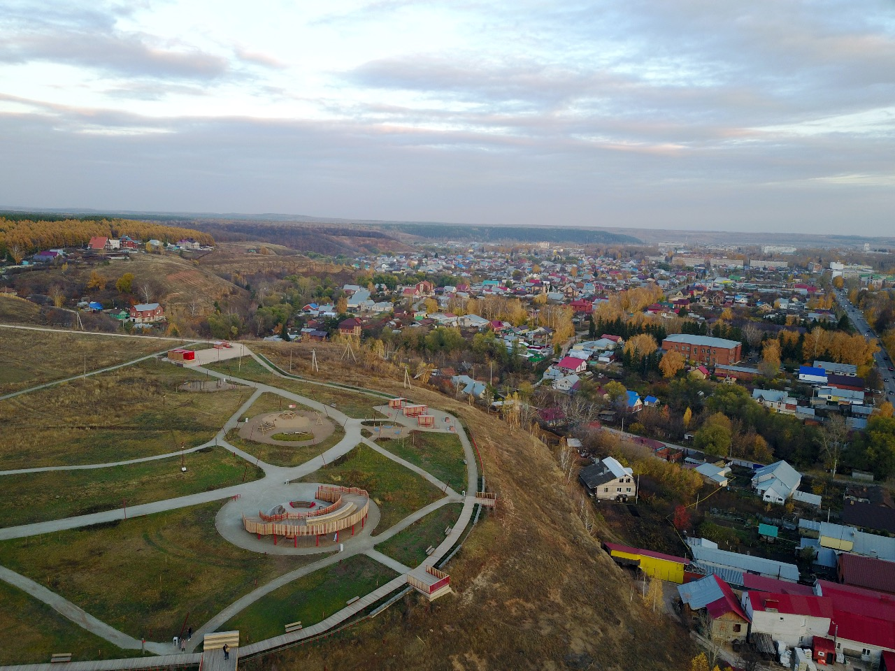 Хотите понять, почему Бугульма — одна из самых высоких точек Татарстана? Поднимитесь на смотровую площадку в парке «Сокольская гора» . Высота всего 16 метров, но этого достаточно, чтобы город раскинулся перед вами как на ладони: золотые купола храма Казанской иконы Божьей Матери, извивы реки Бугульминки, бескрайние дали.