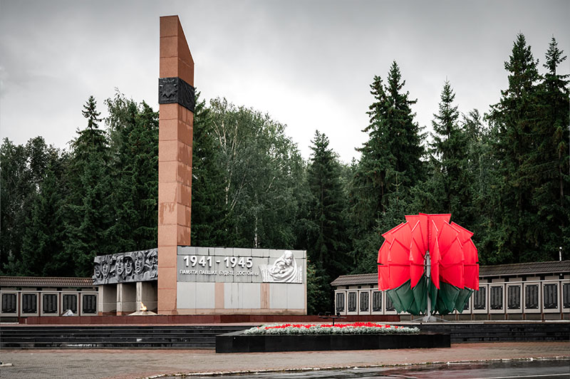 На мраморных плитах, обрамляющих мемориал, высечены фамилии 5 560 земляков, погибших на фронтах Великой Отечественной. Всего за годы войны на фронт ушли 14 844 бугульминца.